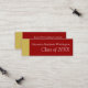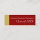 Graduation name cards are a great keepsake to hand out to your senior class friends and associates. They announce your upcoming graduation, and are a way to share in your special event. This design features a dark red background with a gold-yellow colour bar along the side, with your name, graduating class year on the front, and three lines of text on the back for your contact information such as social networking, or cell phone numbers.