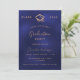 A modern, elegant graduation party invitation. A navy blue background, golden text. The blue colour is uneven. Personalise and add a name, year and details.