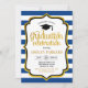 Graduation Party Invitation with Navy Blue White Stripes.