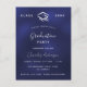 A modern, elegant graduation party invitation. A navy blue background, white text. The blue colour is uneven. Personalise and add a name, year and details.