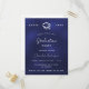 A modern, elegant graduation party invitation. A navy blue background, white text. The blue colour is uneven. Personalise and add a name, year and details.