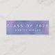 Modern graduation name card with ombre metalic front in different colours for you too choose from with modern typography "class of" and a year coupled with your name in the middle. Back side hold your personal info in elegant sans serif font