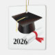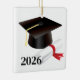 Graduation ornament is shown with a grad cap and scroll print with date.