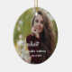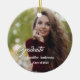 Graduation ceramic round ornament is shown with a sample photo of a graduate with name and date.