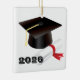 Graduation ornament is shown with a grad cap and scroll print with date.
