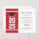 Add your year of graduation, name, and details of the venue with date to this modern bold red and white background with black typography graduation party invitation by using our "Personalise" button above