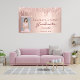 A banner for a girly and glamourous 2025 (or any year) graduation party. A rose gold background with rose gold, pink drips, paint drip look. Add your own photo of the graduate. Text; Congratulations! The text: Graduate, and the name are written with a large modern hand lettered style script.