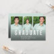 Graduation party invitation for boys with 3 photos on a blue green ombre' background.
