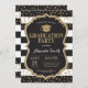 Graduation Party Black and Gold Glitter Invitation Card. Gold Glitter Confetti. Black and White Stripes. Printable Digital. For further customisation, please click the "Customise it" button and use our design tool to modify this template.