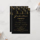 A modern and stylish invitation for a 20xx graduation party. For both him and her. A classic black background and golden and black party streamers as decor. Personalise and add a name and party details. The text Graduation and the name are written with modern handlettered style script. Golden letters.