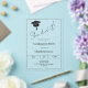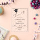 A modern and stylish invitation for a graduation party. Text: She did it! Decorated with a black graduation cap. Personalize and add a name and the details.