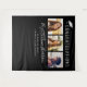 Modern black graduation party photo booth backdrop tapestry with "Congratulations" in white typography and an illustration of a graduation cap on top, a three photo collage, her name in a stylish white script, and her class year and school name in simple white typography. The colours of the background and typography can be edited to your school colours by selecting "edit in the design tool."