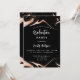 A modern style invitation for a graduation party. A black background decorated with rose gold swirls. Personalise and add a name and party details. The text Graduation and the name are written with modern hand lettered style script. White coloured text.