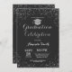 Graduation Party Black and Silver Glitter Invitation Card. Silver Glitter Confetti. Black and White Stripes. Printable Digital. For further customisation, please click the "Customise it" button and use our design tool to modify this template.