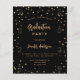 A glamourous invitation card for a graduation party for both him and her. A black background decorated with faux gold stars. Personalise and add a name, year and party details. The text Graduation and the name are written with modern hand lettered style script. Golden coloured text.