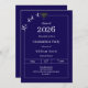 A classic dark blue and white invitation for a graduation party for a guy. Text: He did it! Decorated with a black graduation cap. Personalize and add a name and the details.