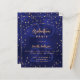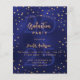 A glamourous invitation card for a graduation party for both him and her. A navy blue background decorated with faux gold stars. The blue colour is uneven. Personalise and add a year, name, year and party details. The text Graduation and the name are written with modern hand lettered style script. Golden coloured text.