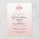 An elegant, simple and girly invitation card for a 2025, or any year graduation party. Chic rose gold and white gradient ombre background and a modern black abstract tassel topper, with the year inside. Template for name and party details. The text Graduation and the name are written with modern handlettered style script. Black coloured text.