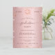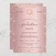 A modern, elegant and invitation. A blush pink faux metallic looking background decorated with rose gold faux glitter dust and a cap. Personalise and add a name, year, and party details.