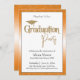 Graduation Party Bright Orange Ombre Gold Confetti Invitation