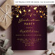 A glamourous invitation card for a graduation party for both him and her. A dark burgundy gradient background decorated with faux gold stars. Personalise and add a name and party details. The text Graduation and the name are written with modern hand lettered style script. Golden coloured text.