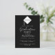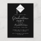 An elegant, simple invitation card for a 20xx graduation party for both him and her. A black background and a modern black abstract tassel topper in white with the year inside. Template for name and party details. The text Graduation and the name are written with modern handlettered style script. White coloured text.