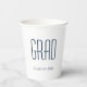 Graduation Party Class of 2025 paper cup with a minimalist design. With blue customisable lettering, you can add your own text. A simple addition to that special party for your grad.