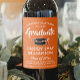 Add a personalised touch to college or high school graduation party decorations with these elegant orange, white and black wine bottle labels. Design features an orange background, black mortar board cap, stylish modern typography, handwritten style script calligraphy, and a customisable message reading "Congratulations to our Graduate". Text at the bottom includes class year, school name, and optional lines for degree, beverage type, or other info. All text is simple to customise. These labels make a stylish graduation party drink idea and an elegant addition to the graduate's special day celebration. Cheers!