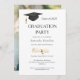 Celebrate your graduate in style. Design features graduation hat cap with tassel and diploma scroll. "Graduation Party" is written in trendy typography. Personalise with graduate's name, school name, graduation year and party celebration details . Perfect for either high school , college or university graduation. The back of the invitation features your personalised photo.