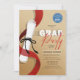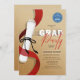 This modern and stylish graduation invitation features decorative fonts of 'Grad Party', a large diploma scroll and tassel wrapped with a red ribbon all on a kraft paper textured background. Add your celebration event details using the provided template.