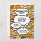 A fun, cool, and trendy retro comic book pop art-inspired graduation invitation that puts the wham, zap, pow into any superhero grad's celebration event. Add a special grad photo on the reverse. Designed by Thisisnotme©