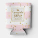 Graduation Party Gold Glitter Pink Stripes Custom Can Cooler