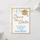 This festive Save the Date card features a gold glitter-overlaid header, a coordinating graduation cap, and colourful confetti graphics. Use the template fields to add your own details, and click to edit further if you want to change colours - font, layout, or other design elements. The header text, cap, and confetti graphics can be re-positioned and resized if needed.