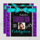 Add your own Photo. Graduation Party, Grad, Purple and Teal Blue Leopard Wild Animal Print. Graduate Photo, Purple bow, Zebra Black Glitter. Invitations for All Occasion Invite with Photo birthday invites. Customise with your own details and age. Template for Sweet 16, 16th, Quinceanera 15th, 18th, 20th, 21st, 30th, 40th, 50th, 60th, 70th, 80th, 90, 100th, Fabulous product for Women, Girls, Zizzago created this design PLEASE NOTE all flat images! They Do NOT have real Glitter, Diamonds Jewels or real Bows!!