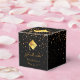 For a modern and trendy graduation celebration. A chic black background with golden confetti. The text: Graduate is written with a large hand lettered style script, golden letters. Personalize and add a name and year. Decorated with a modern abstract faux gold cap, tassel topper.