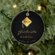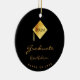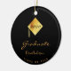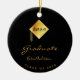 For a modern and trendy graduation celebration. A chic black background. The text: Graduate is written with a large hand lettered style script, golden letters. Template for a name and year. Decorated with a modern abstract faux gold cap, tassel topper. For both him and her. Perfect as a gift, keepsake or party decoration.