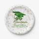 Elegant gold and green Graduate, cap, stars and diploma adorn this paper plate along with your graduating year. Add your name and school for a personal touch! Easy to personalise with custom options. Use the 'Customise It' button to customise the product, change the background colour, or add text.
