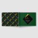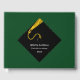 Creative graduation guest advice and good luck wishes book featuring black and gold cap on green background. To personalise edit text to add graduate's name, school and senior class year.