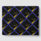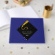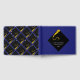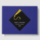 Creative graduation guest advice and good luck wishes book featuring black and gold cap on blue background. To personalise edit text to add graduate's name, school and senior class year.