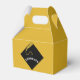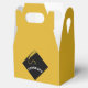 Creative graduation party favour box featuring congrats on black graduation cap with gold tassel.
