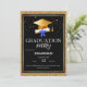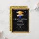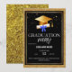 Elegant graduation party invitation with a clean white background, soft gold accents, and a classic graduation cap design. Fully editable template to personalize the name, date, time, location, class year, and RSVP details. Perfect for high school or college graduation celebrations.