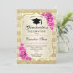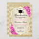 Graduation party invitation. Features stripes, script font, pastel blush pink roses, tassel and confetti. Elegant design with faux glitter gold. Perfect for an elegant glam bling chic celebration.