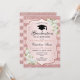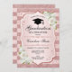 Graduation party invitation. Features stripes, script font, white roses, tassel and confetti. Elegant pink design with faux glitter rose gold. Perfect for an elegant glam bling chic celebration.