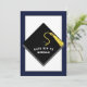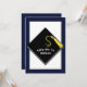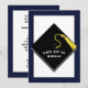 Creative graduation party invites for the class of 2025 grad featuring black cap and gold tassel on navy blue background.