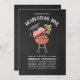 Graduation Invitations | BBQ Party. Chalkboard background. Vintage retro with grill and graduation cap. Easy to customise!
