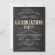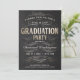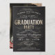 Calligraphy Scrollwork Graduation Party Invitations with faux Gold Foil on black chalkboard background. Optional photo. Minimalist, vintage, formal, fancy, elegant, old-fashioned calligraphic scrolls.
