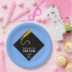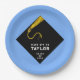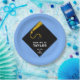 Creative grad party plates featuring graduation cap and gold tassel design on a light-blue background. Edit text to add your favourite grad's name and the year.