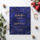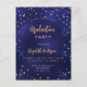 A glamourous invitation card for a graduation party for both him and her. A navy blue background decorated with faux gold stars. The blue colour is uneven. Personalise and add a name, year and party details. The text Graduation and the name are written with modern hand lettered style script. Golden coloured text.