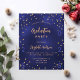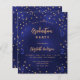 A glamourous invitation card for a graduation party for both him and her. A navy blue background decorated with faux gold stars. The blue colour is uneven. Personalise and add a name, year and party details. The text Graduation and the name are written with modern hand lettered style script. Golden coloured text.