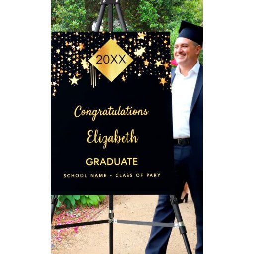 For the graduation party. Personalise and add photo and school name, year. The word Graduate is written with a modern hand lettered style script. White letters. For both him and her.